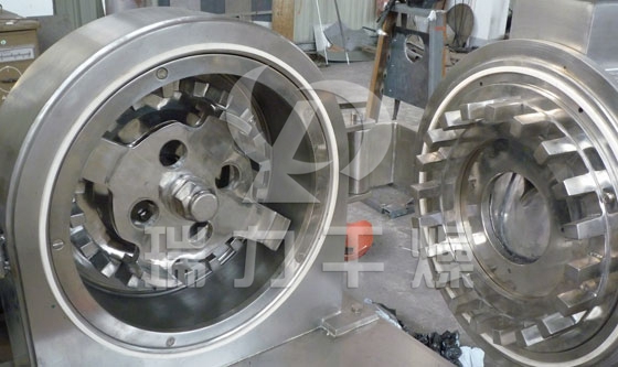 本機的工作原理是物料進入粉碎室,在高速旋轉的活動齒盤與固定齒盤間受齒的沖擊、剪切、磨擦及物料間的相互撞擊的作用下被粉碎,經(jīng)篩網(wǎng)篩選后即成為所需的粉料。